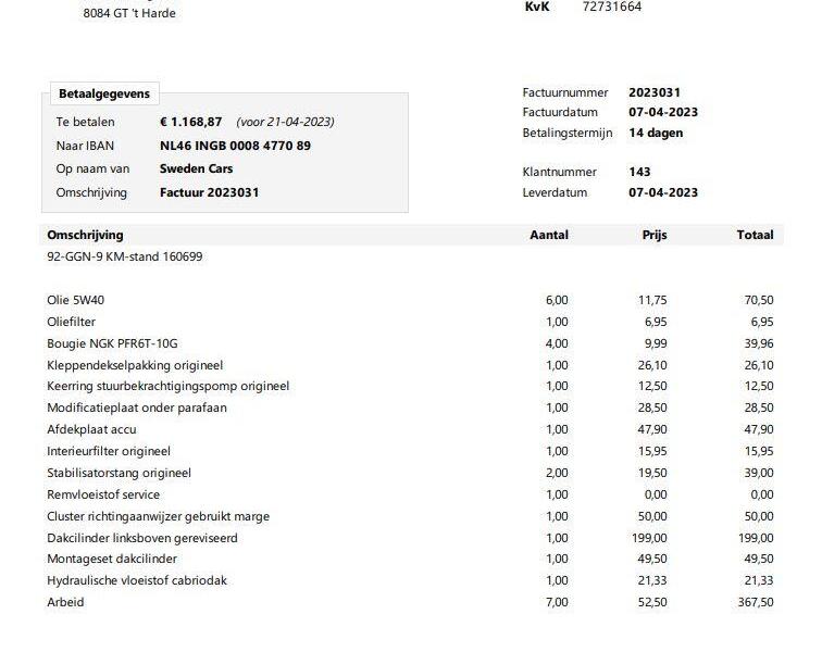 Hij rijdt en schakelt voortreffelijk, en is storingsvrij. Bijgeleverd twee contactsleutels, complete boordmap, origineel onderhoudsboekje met stempels en de factuur van het rijklaarmaken ad €1.168,87. Gemonteerd zijn 4 prima zomerbanden.